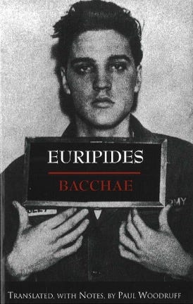 Dionysus has an attractive side. Want to get drunk? Dionysus, the god of wine, is your guy. But once you're intoxicated, he demands utter loyalty. In Euripides’s The Bacchae Dionysus delivers to his followers, the Bacchae, the transformation loyalty (and wine) promise. Intoxication brings unmediated experience of his godhead—radiance—what improvisation has always promised. His drunken Bacchae “see me clearly as divine”—his insistent demand. But compared to Hermes’s baby poot, Dionysus’s demand of loyalty wreaks total chaos. No authority is left standing but him.